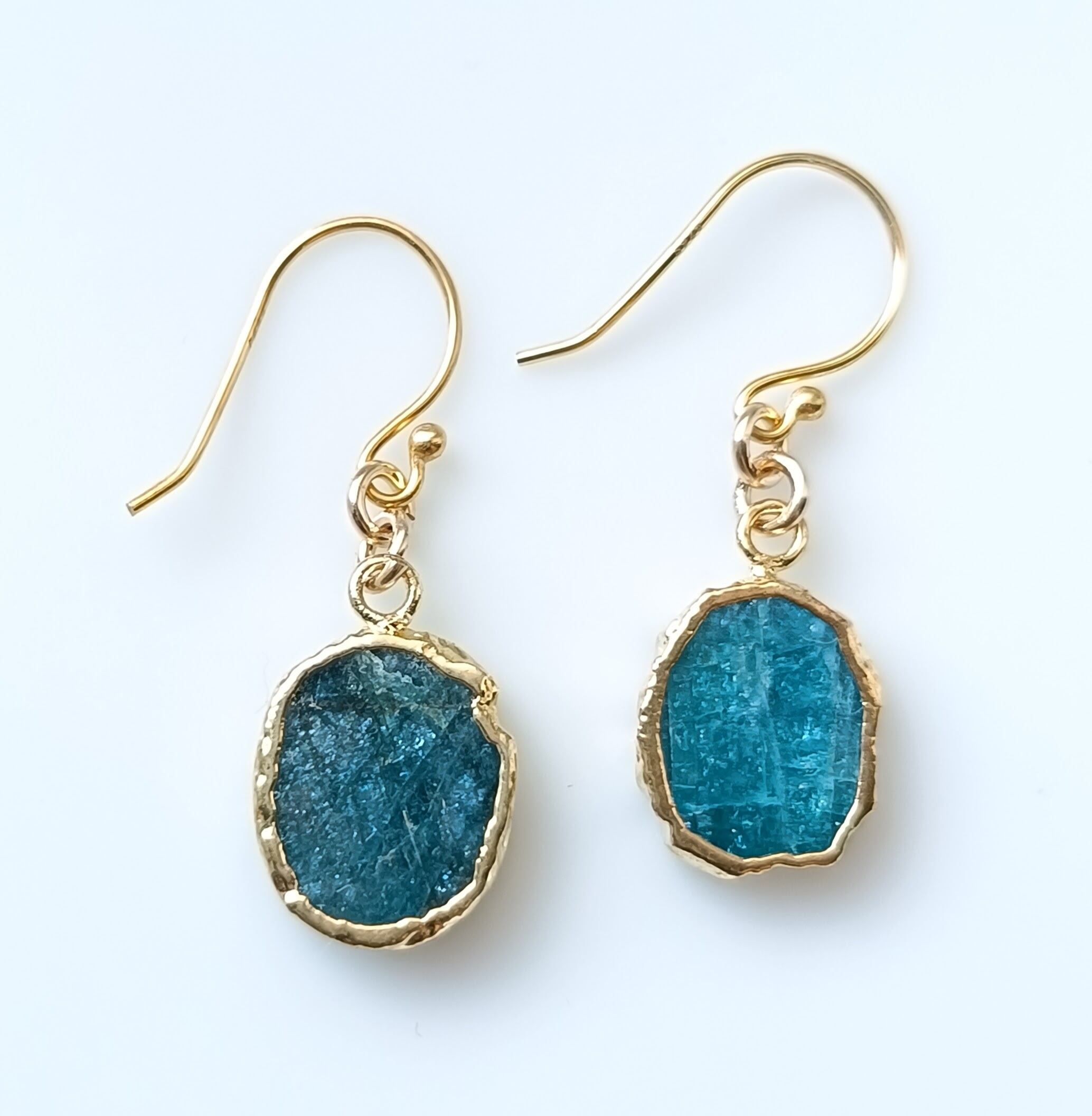 天然石ブルーアパタイト、ピアスフックはシルバー925に18Kメッキをかけております。他真鍮